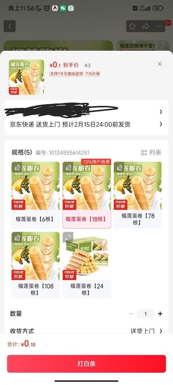 【0.1撸18根榴莲蛋卷】