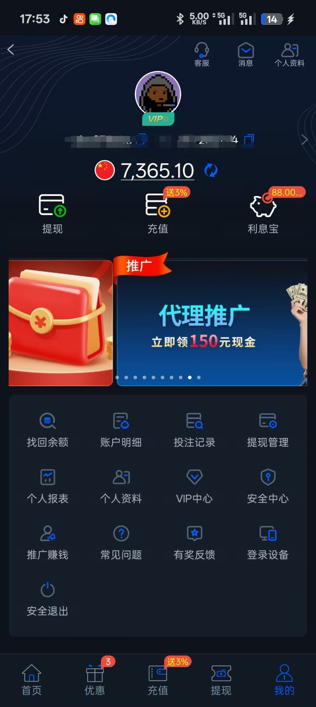 打这么多就算有钱充,提现肯定黑,1-2千还有可能