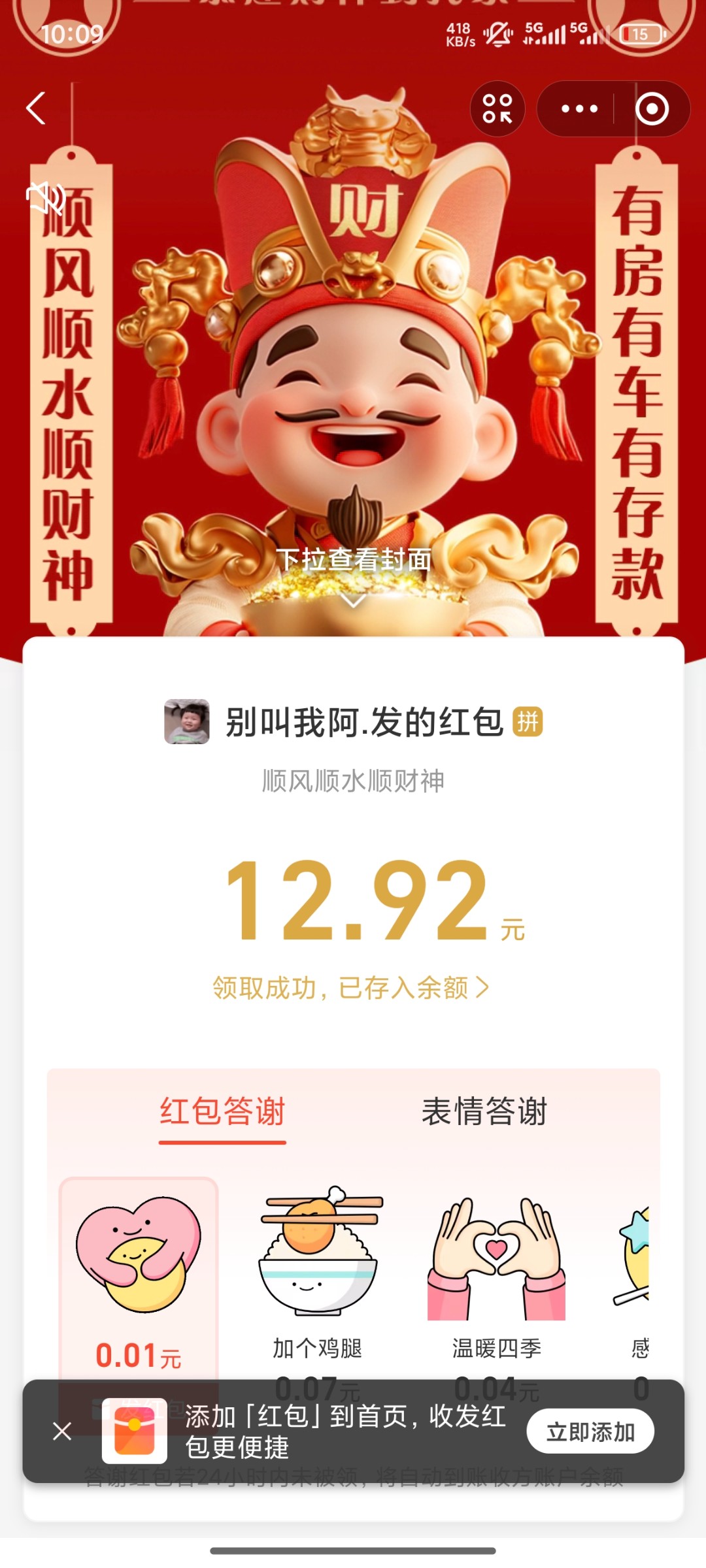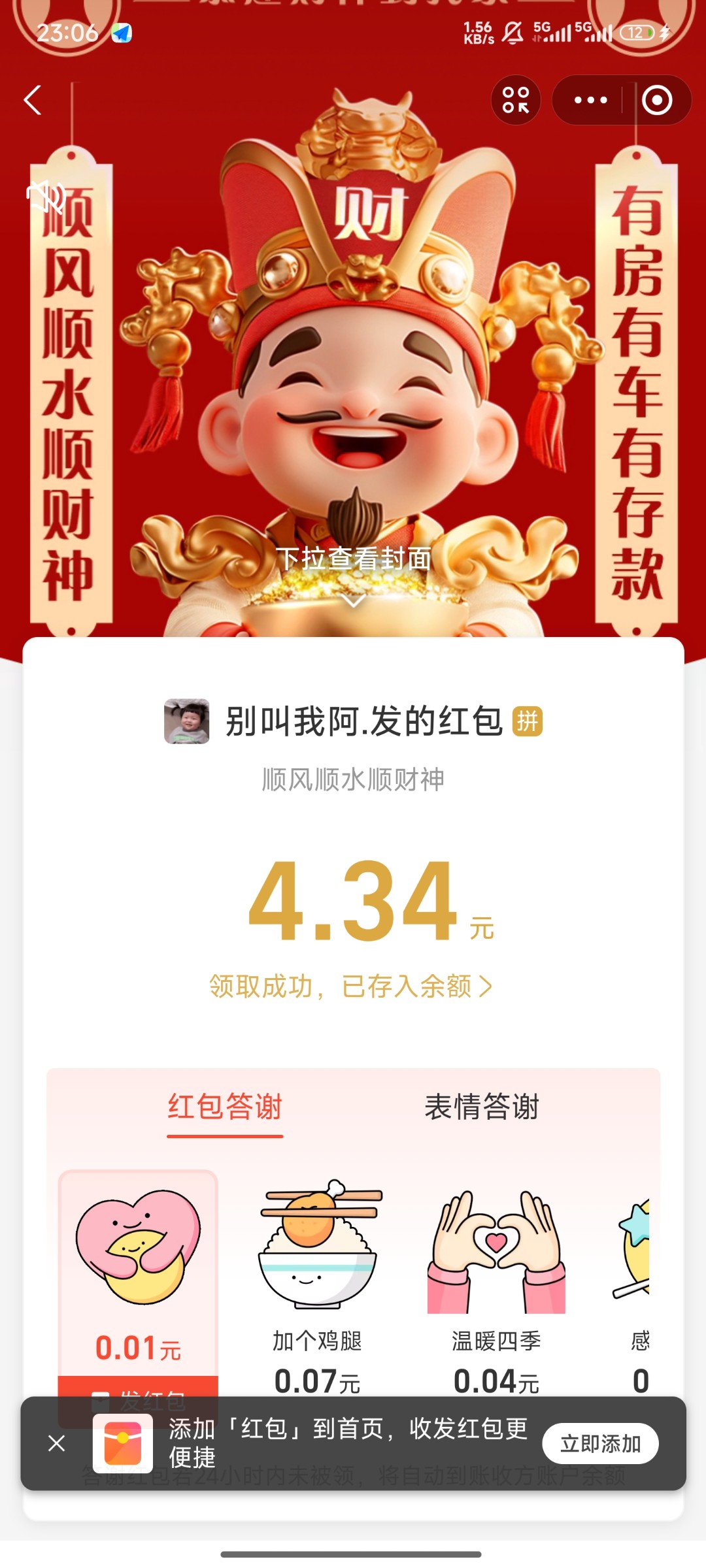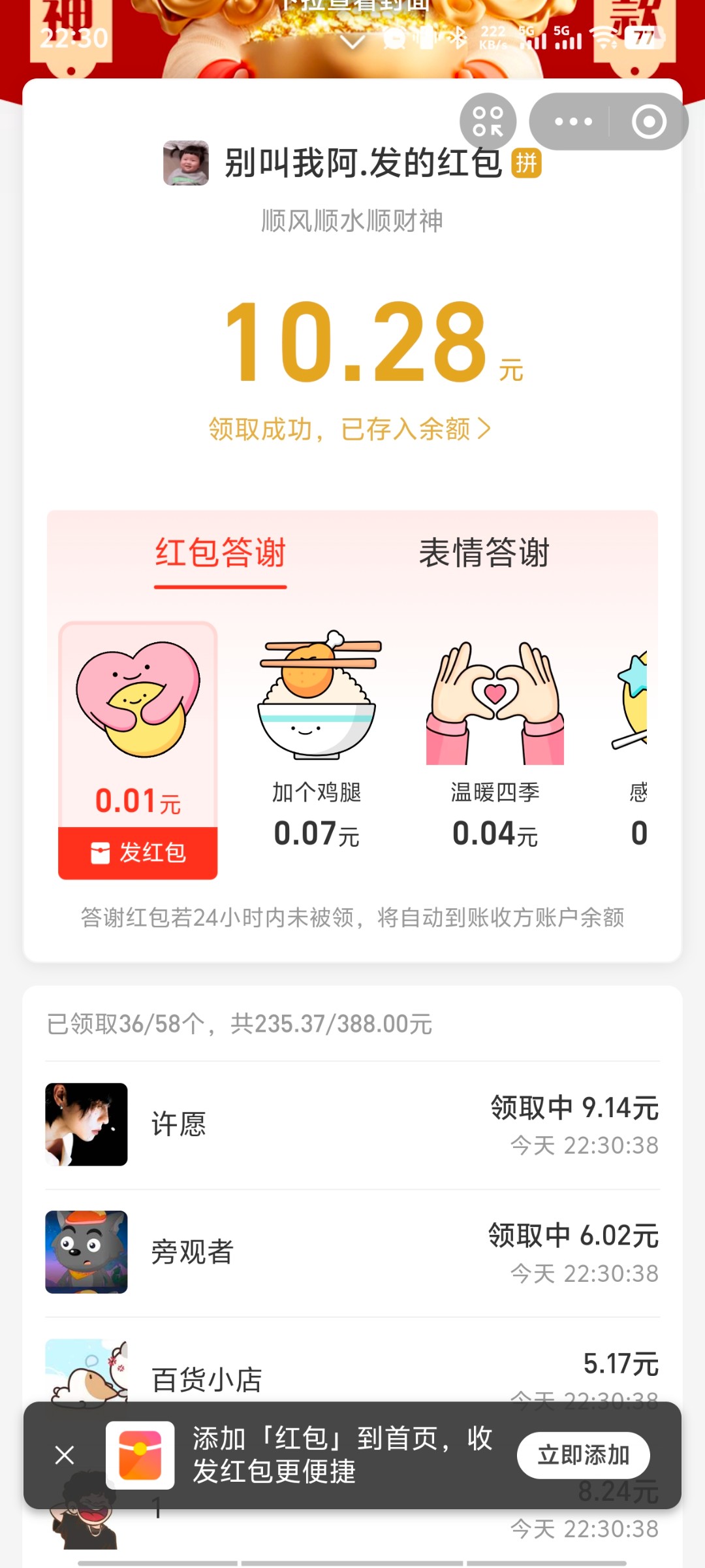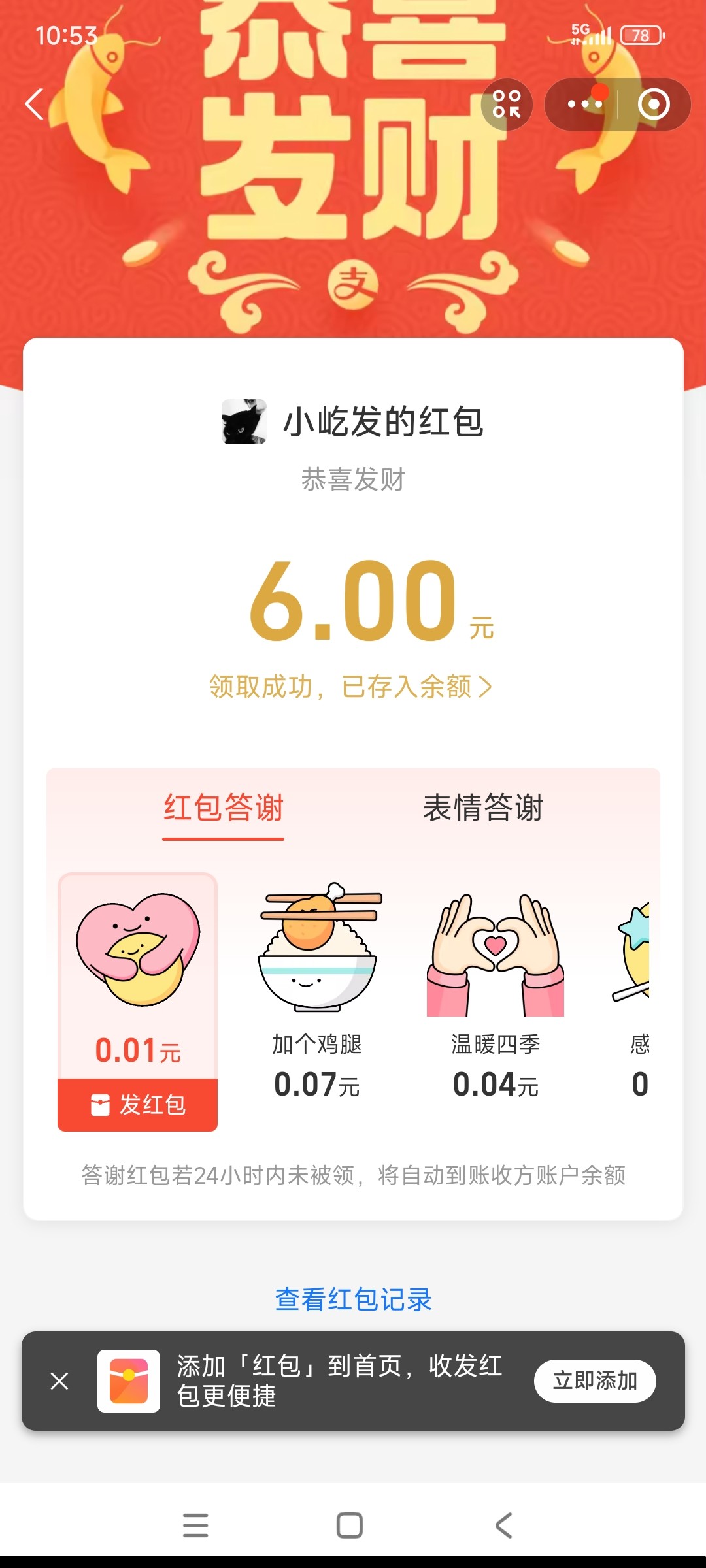 新鲜的,贝壳群里发的红包