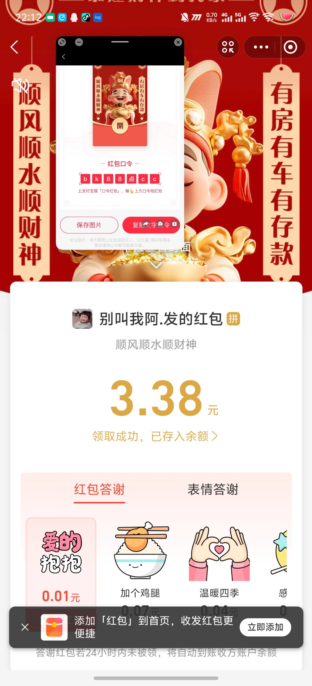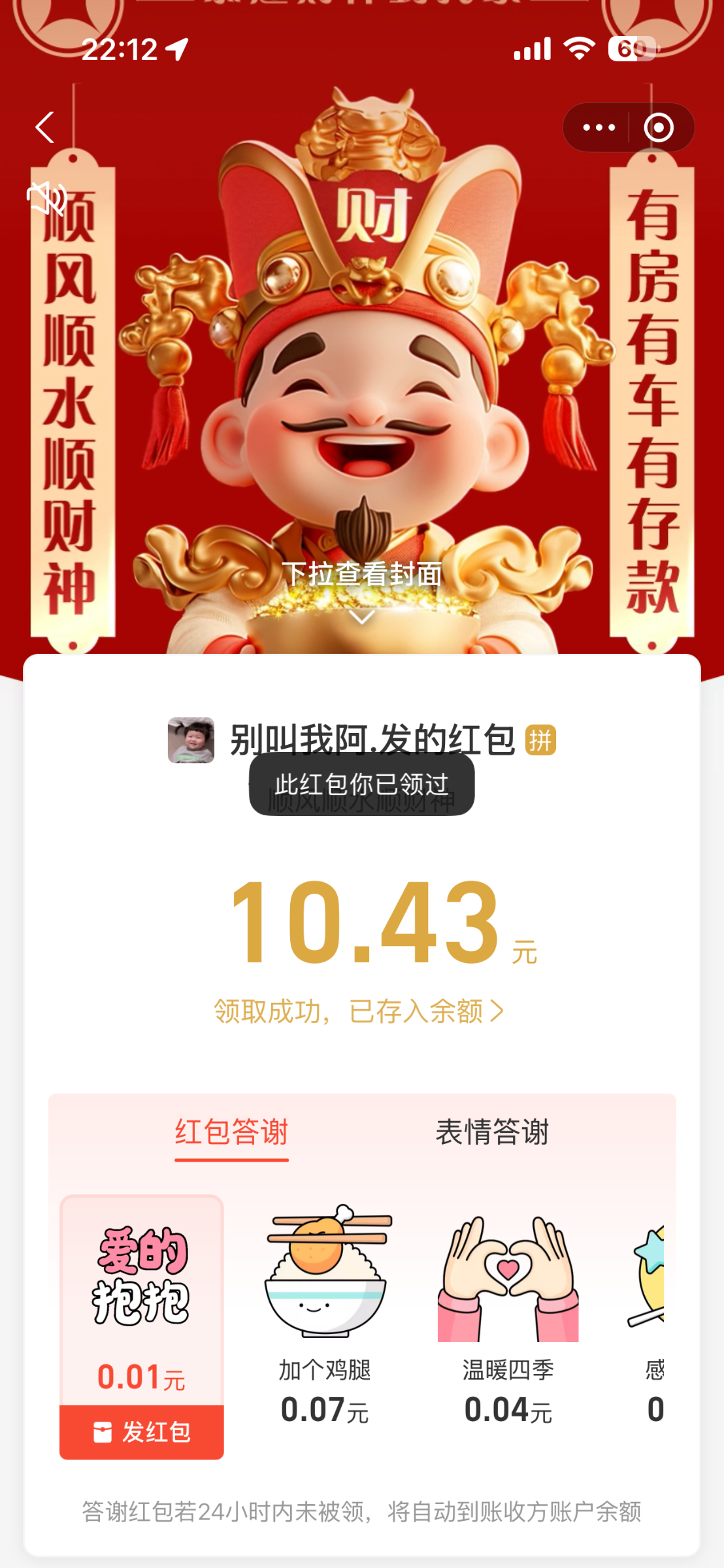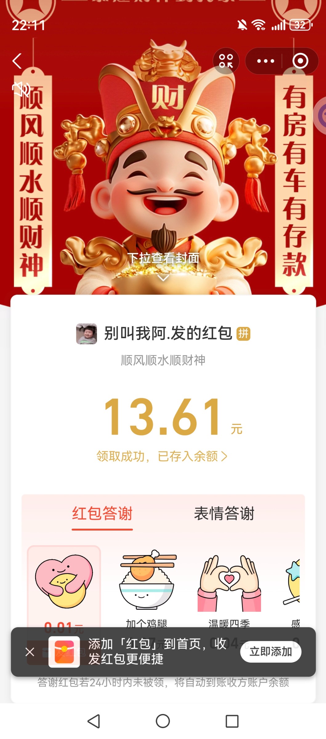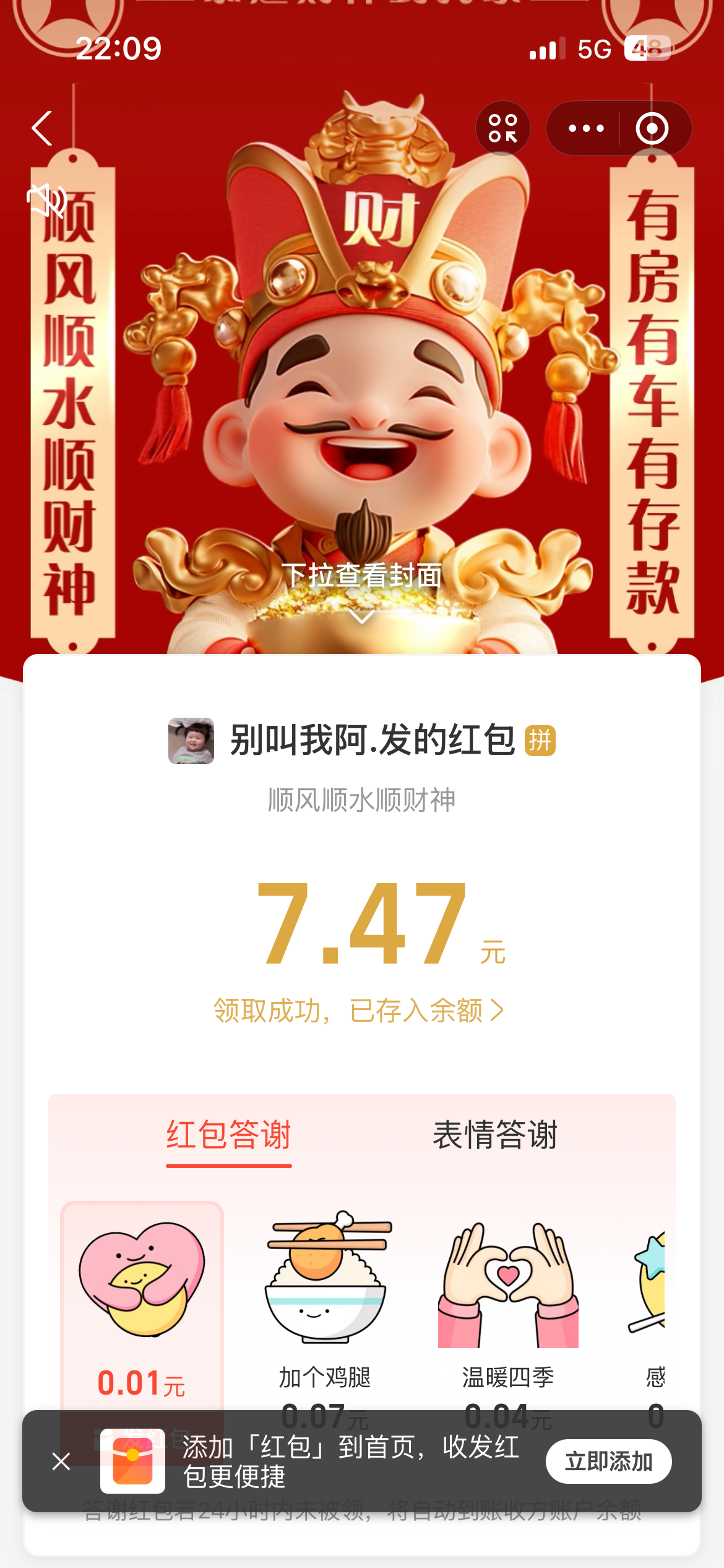 新鲜的,贝壳群里发的红包