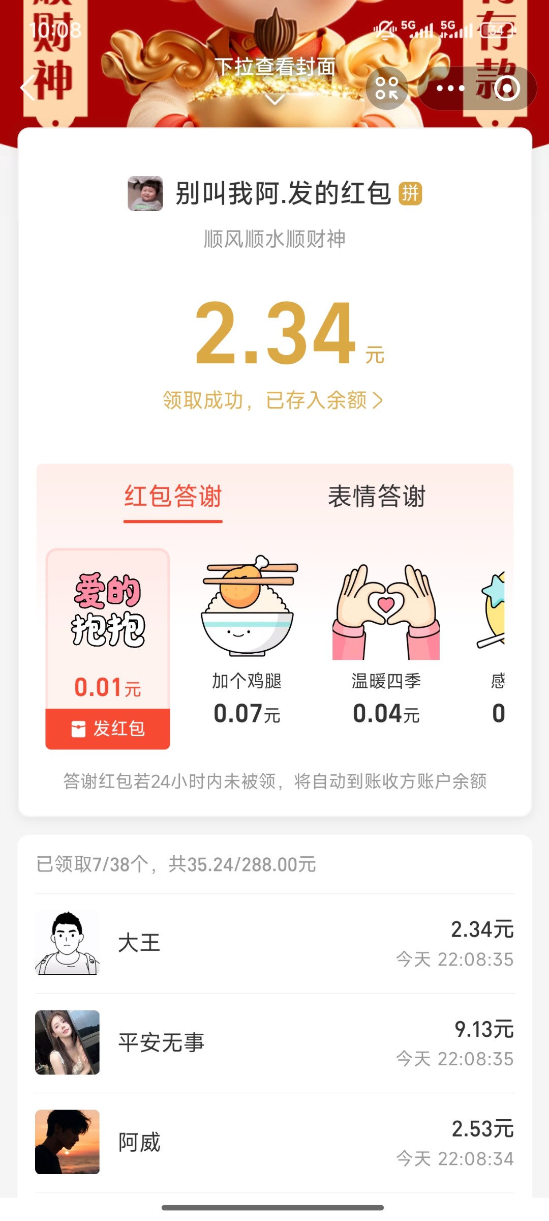 挑战最少红包。