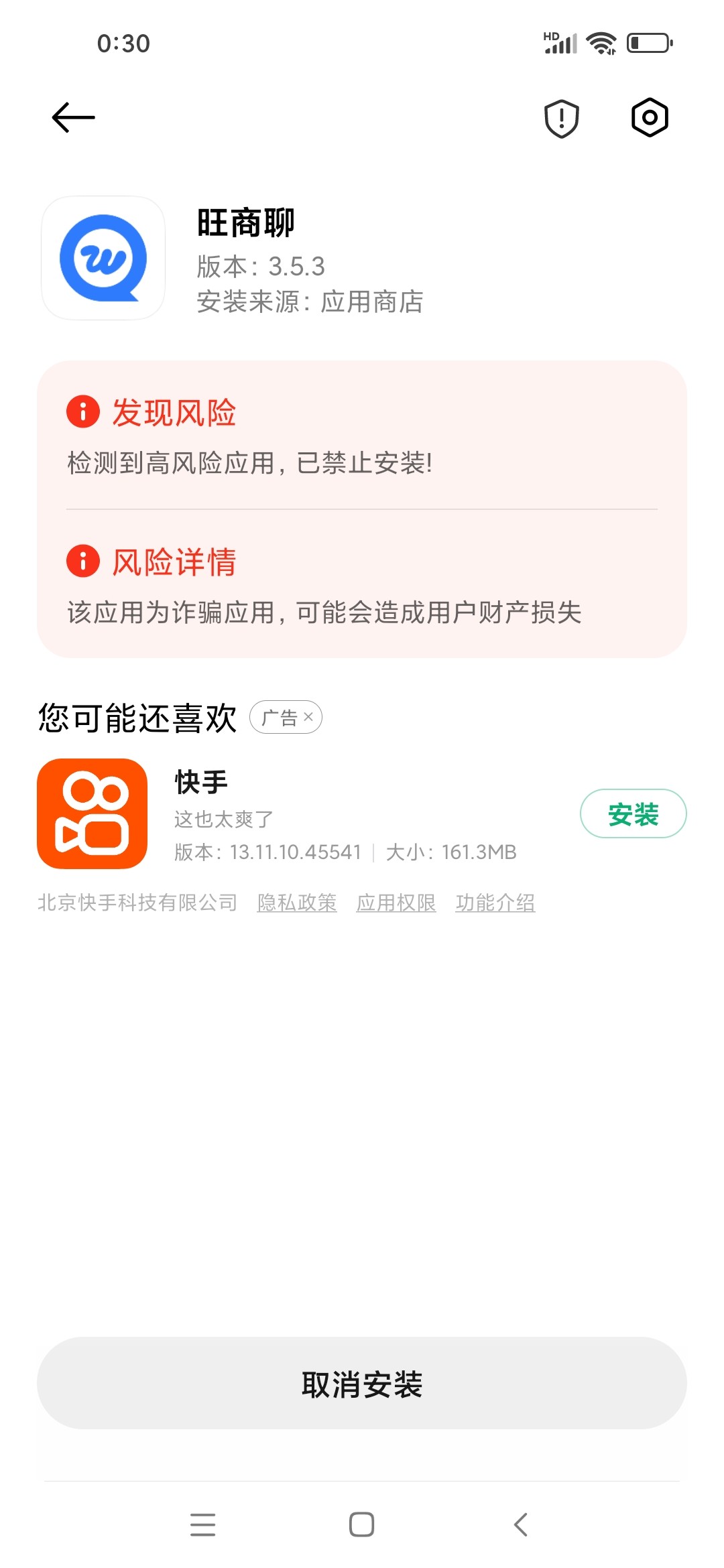 旺旺聊,提示诈骗应用禁止安装。怎么超做呢