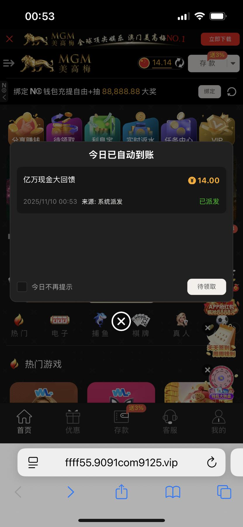 【9091美高梅】回馈彩金