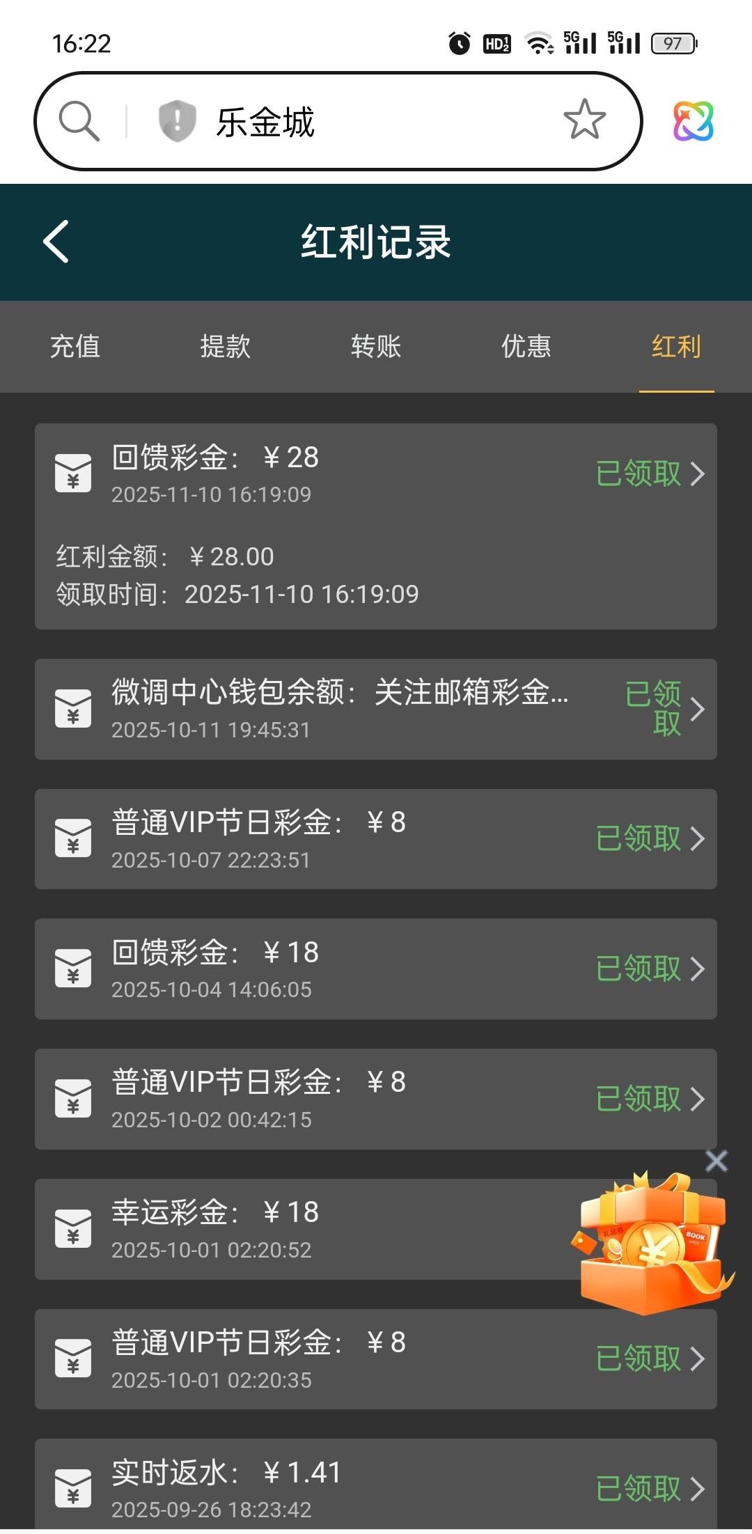 【乐金城】回馈彩金