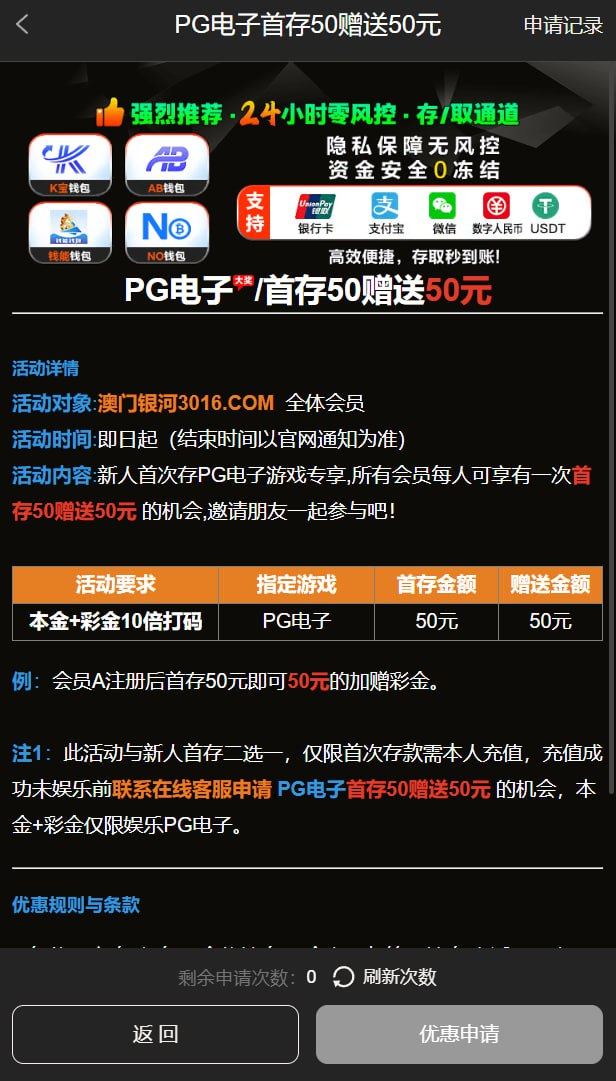 【新人首存方案一】首存50送50(仅限娱乐PG电子)
