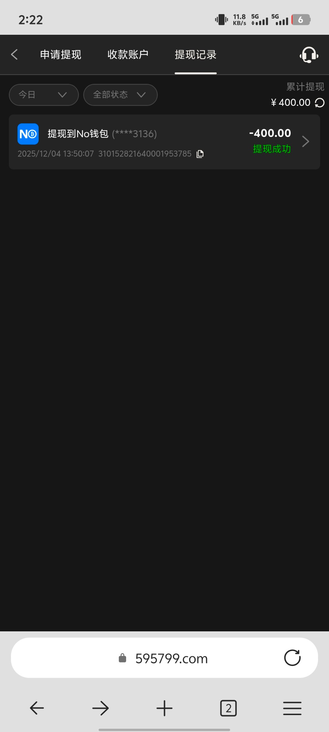 我也是400,不过提现等了好久,一直出款中