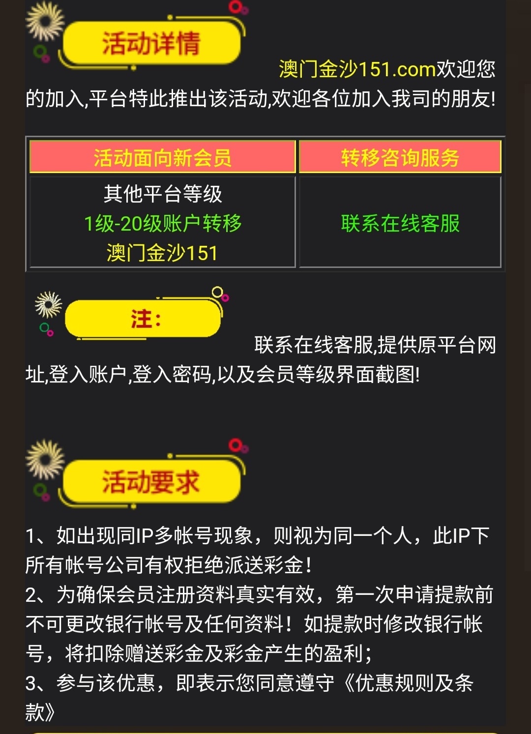 新用户注册下载APP绑定信息申请28注册彩金,还有转移彩金这两只能申请一个,出款要充值具体看下图规则自测吧。