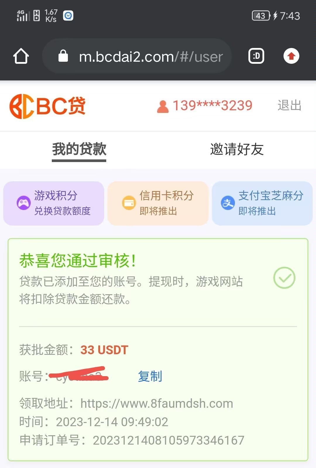 提交的账号有充值.有流水,给额度就多!九游会上申请到了 送33 USTD 折合人民币300左右,当时出款了200多,审核会有电话回访注意接!!!!
